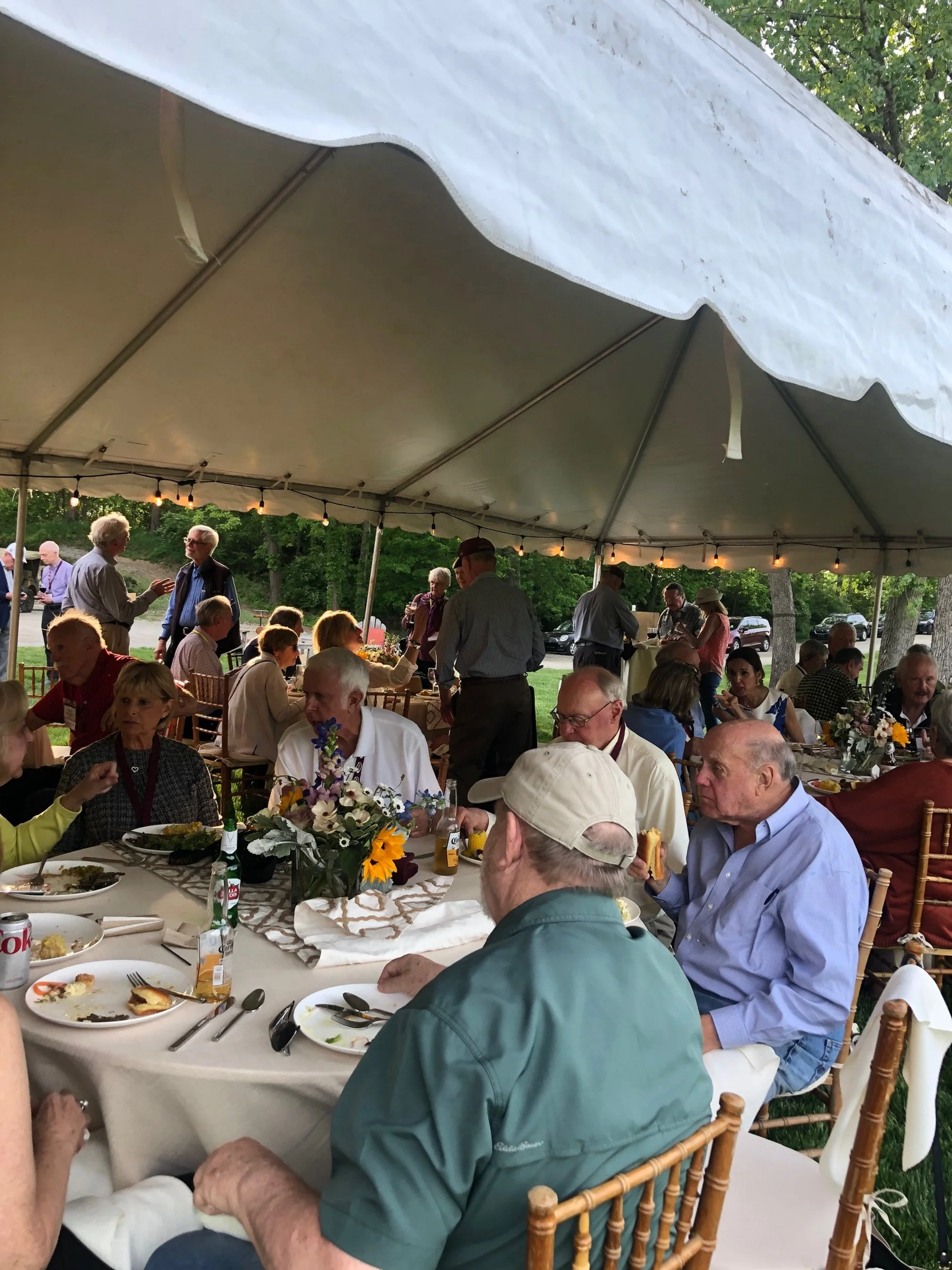 Our Reunion began with a Welcome Gathering at The Lodge, Craig Duchossois’ property located about a mile “inland” from the southwest corner of Lake Maxinkuckee. For the Gathering, Craig had set up a tent with seating and a dinner buffet.